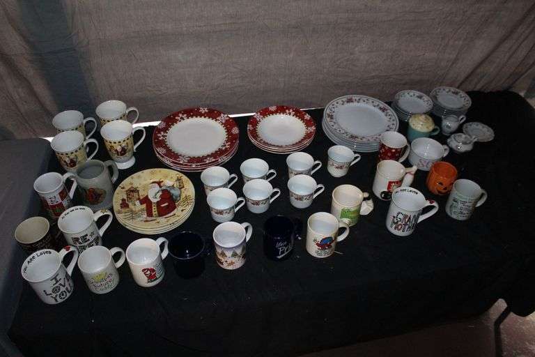 LOT 84 - Sheffield Cups, Saucers, Plates, Christmas Plates, Soup Mug, and Coffee Mugs