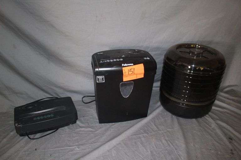 LOT 151 - Dehydrator, Fellowes Paper Shredder, and Royal Paper Shredder Top