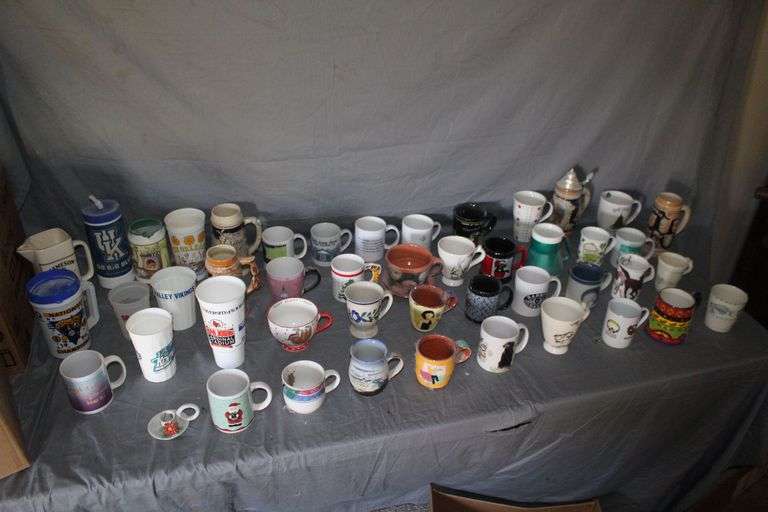 LOT 108 - Mugs, Plastic Cups, Jameson Irish Whiskey Pitcher, German Beer Stein, and Misc.