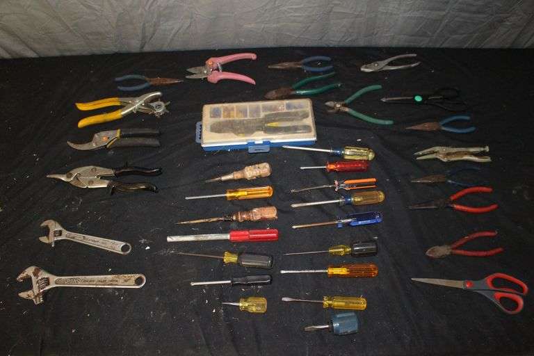 LOT 97 - Adjustable Wrenches, Needle Nose Pliers, Screwdrivers, Scissors, Electrical Pliers, and Misc. Pliers